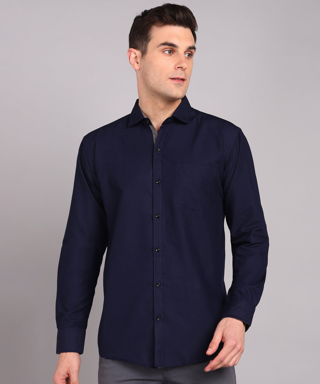 This Sanganeri Solid Navy Cotton Shirt offers timeless elegance with its clean design and deep...
