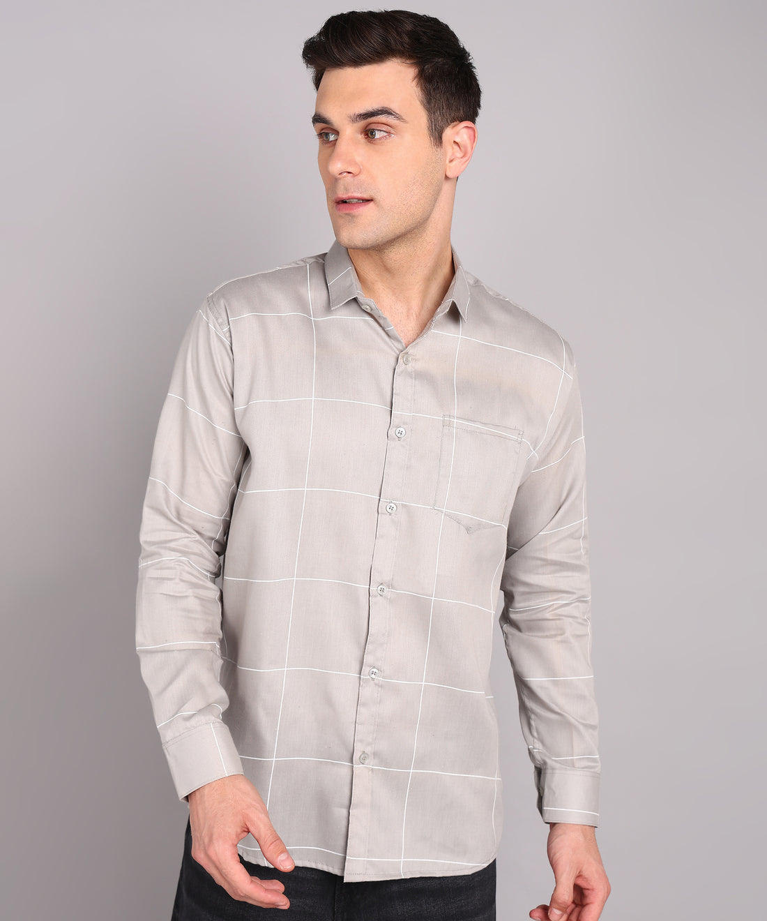 Sanganeri Grey & White Bold Checked Cotton Shirt