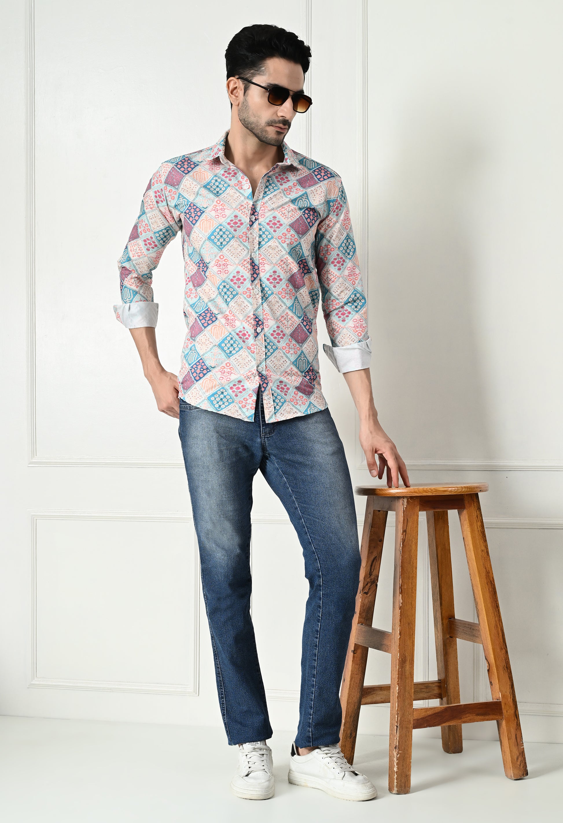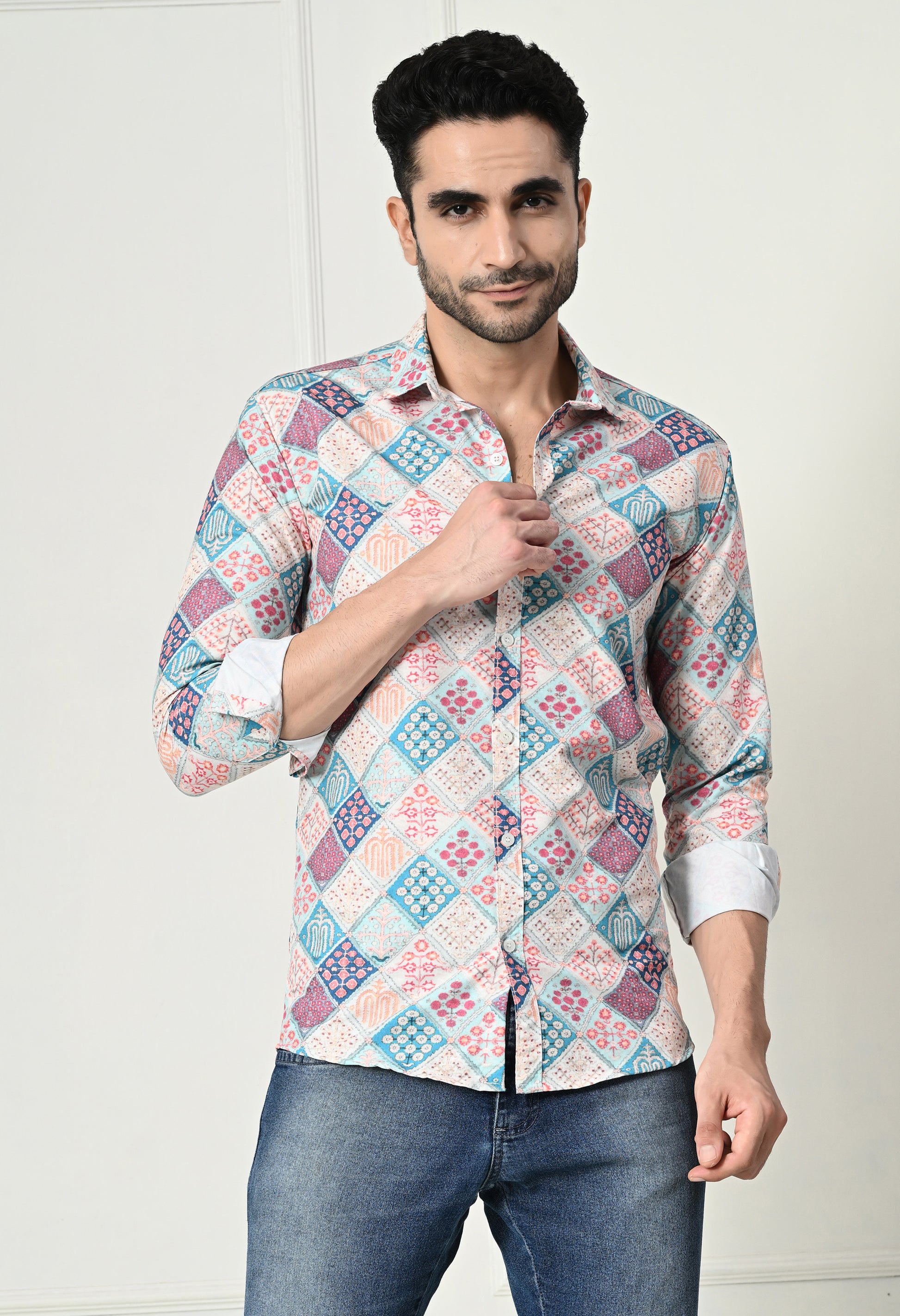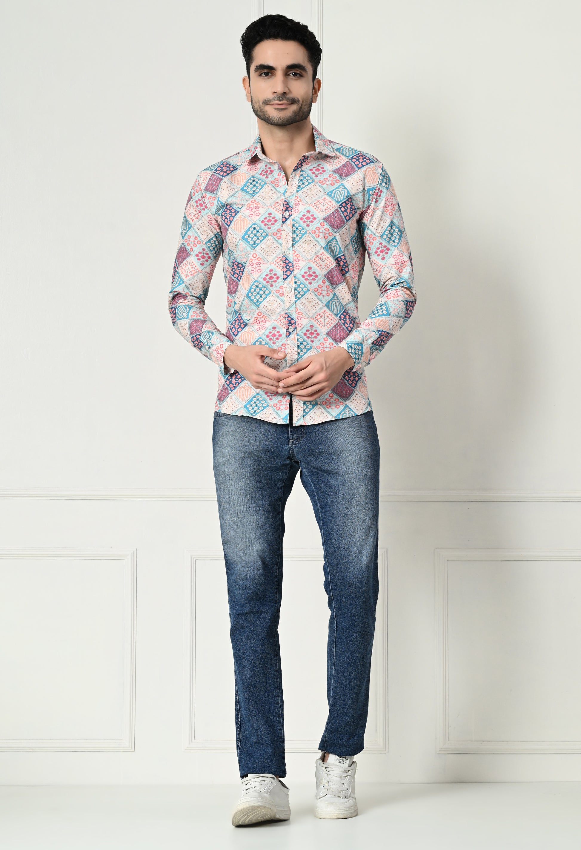 Jaipuri Block Print Patchwork Slim Fit Festive Shirt