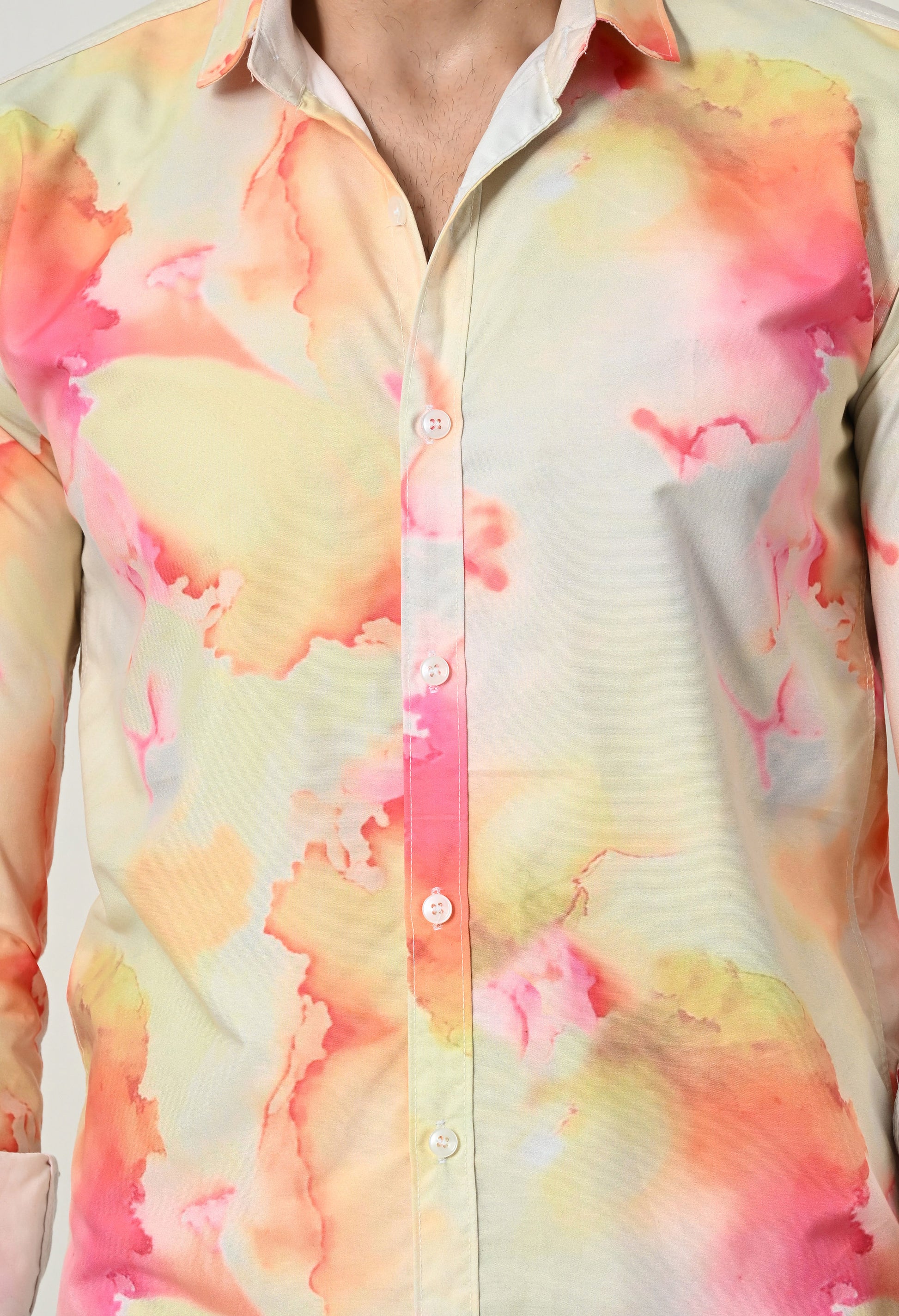 Abstract Tie-Dye Print Slim Fit Festive Shirt