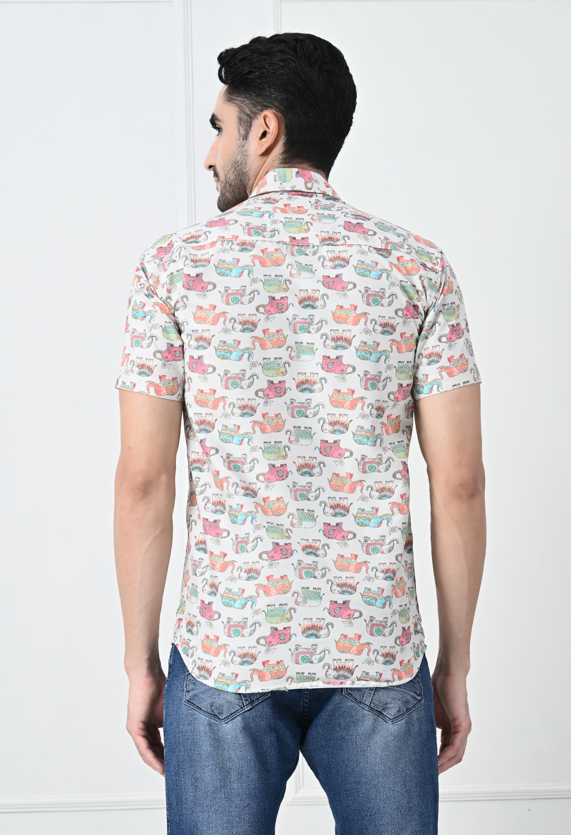 Quirky Camel Print Slim Fit Half-Sleeve Shirt
