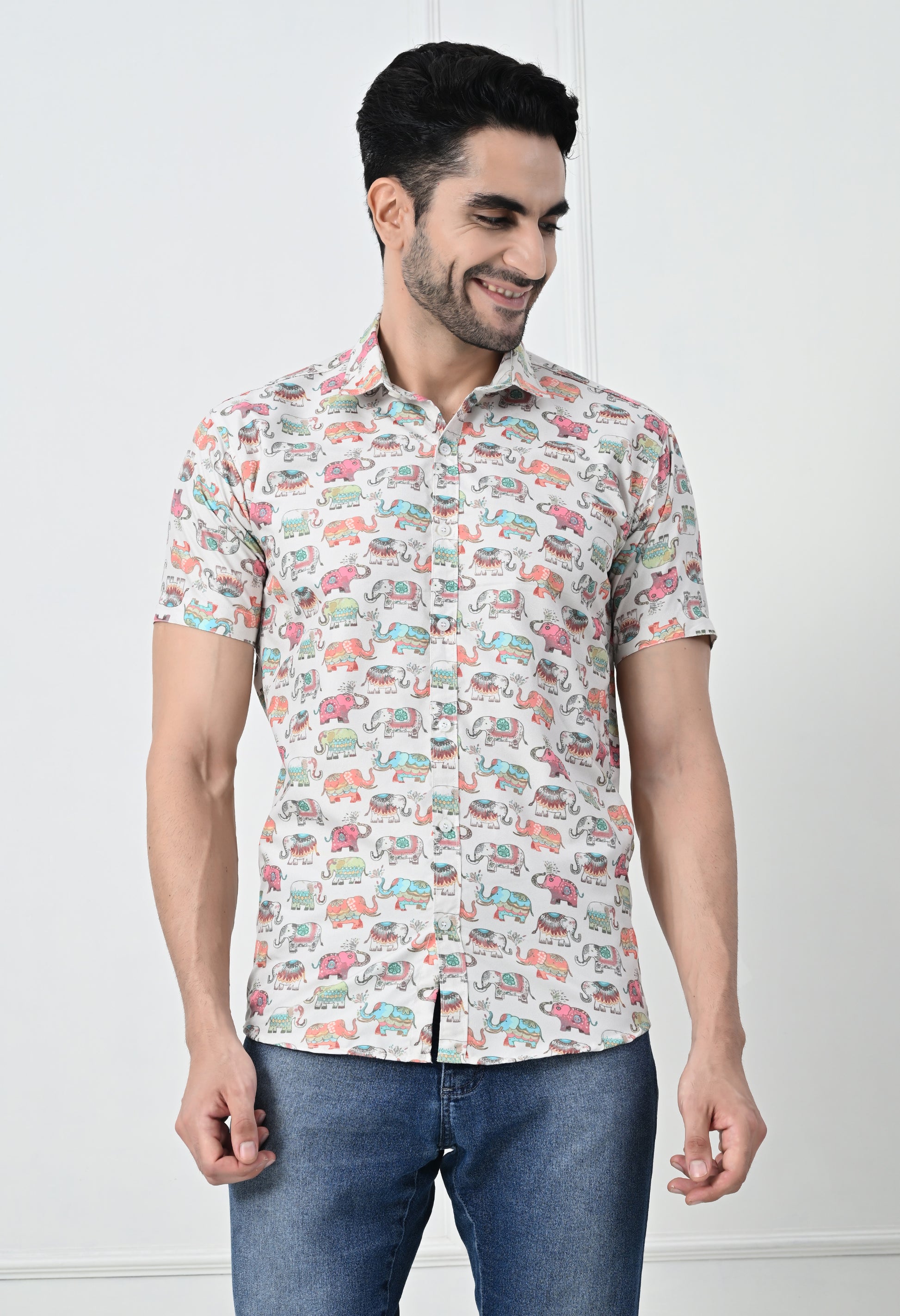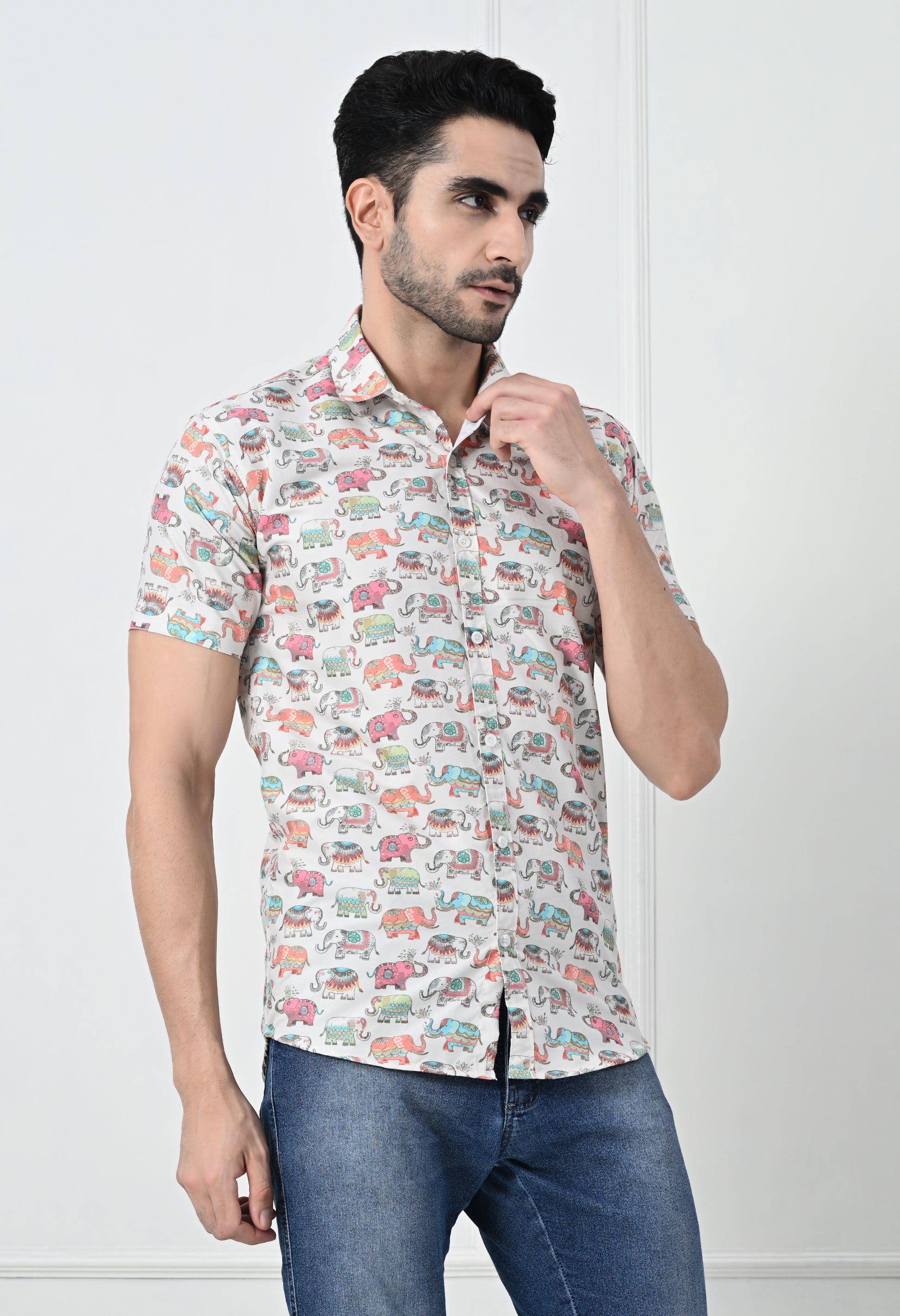 Elevate your style with the Quirky Camel Print Slim Fit Half-Sleeve Shirt, inspired by Rajasthan’s iconic "Ship of the Desert." Designed with a tailored slim fit, this shirt blends cultural vibrancy and contemporary fashion effortlessly. Its playful camel motif adds a distinctive touch, making it perfect for those seeking a unique statement piece that sparks conversation. Ideal for casual outings or creative workspaces, this half-sleeve shirt offers both comfort and individuality, capturing the spirit of desert adventure in every wear.