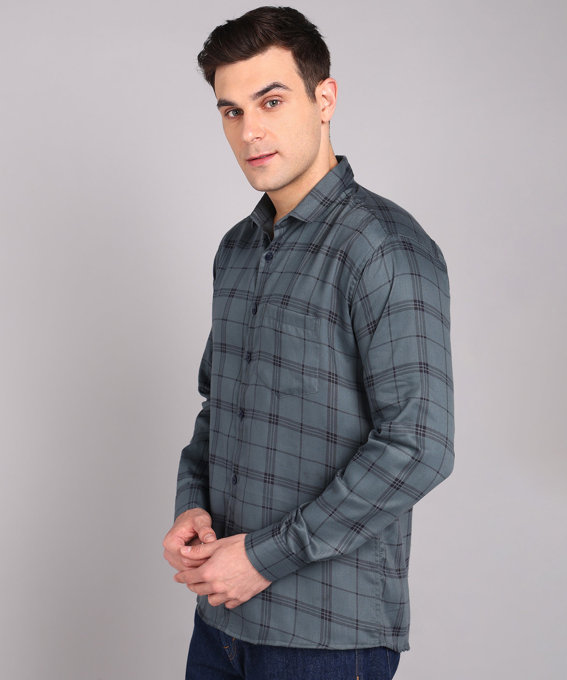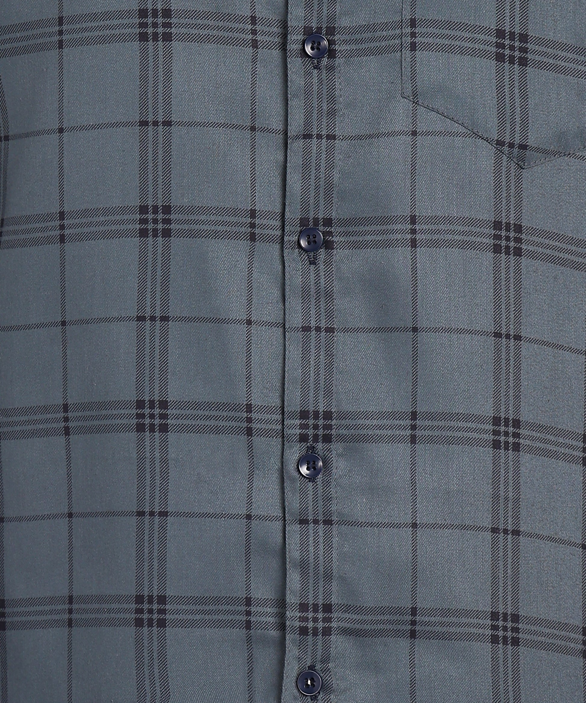 Sanganeri Grey & Navy Checked Cotton Shirt
