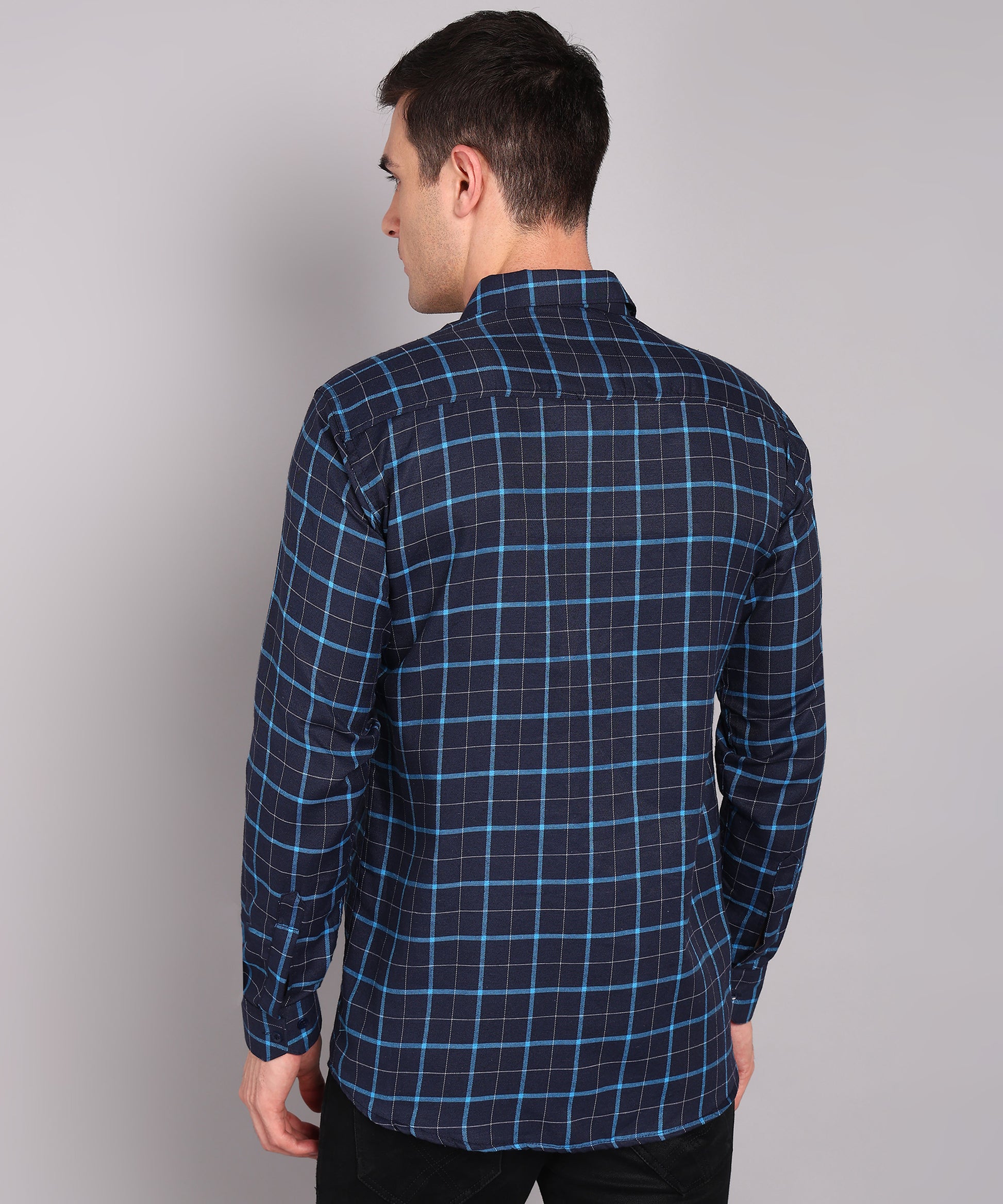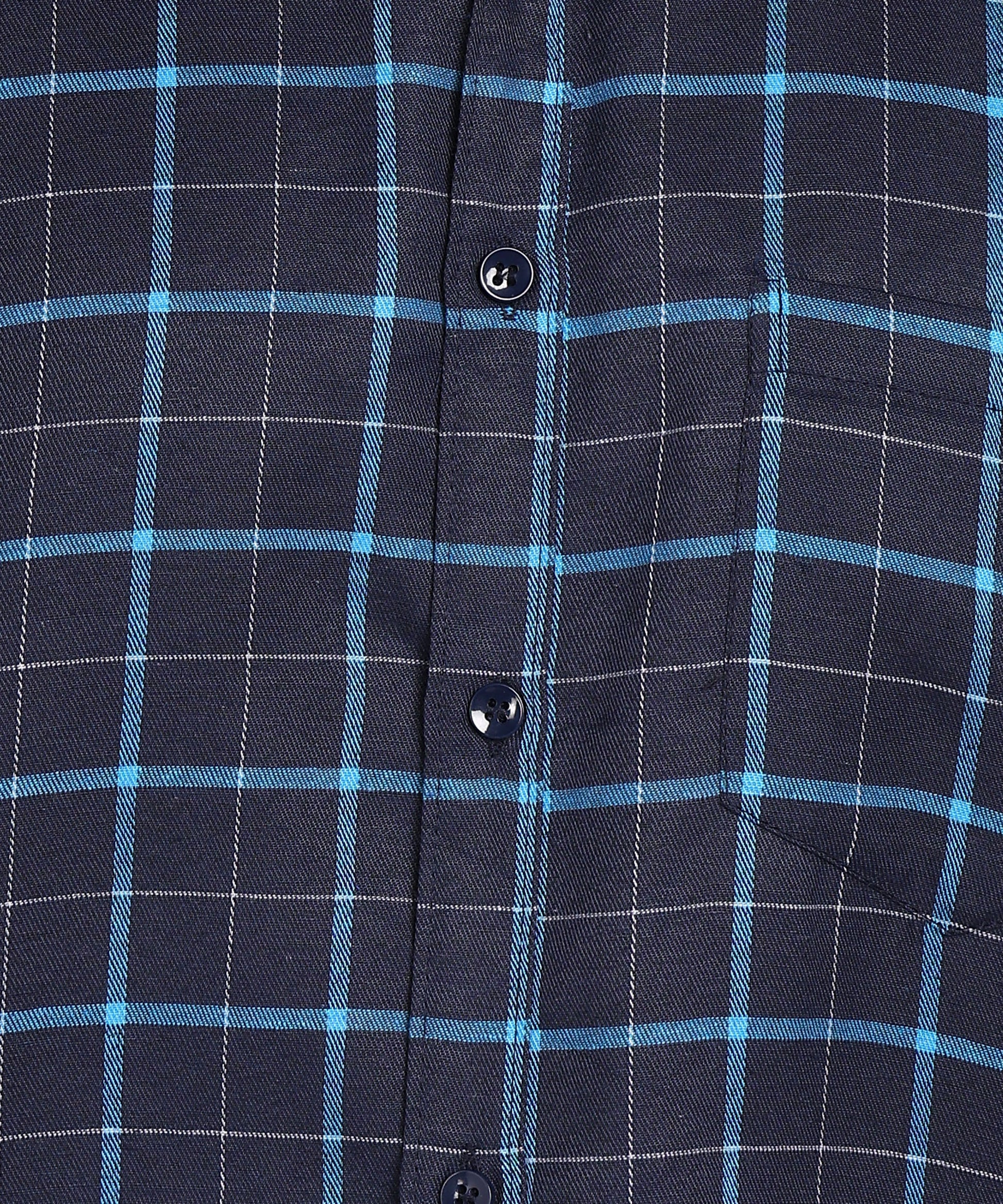 Sanganeri Navy & Cyan Grid Checked Cotton Shirt