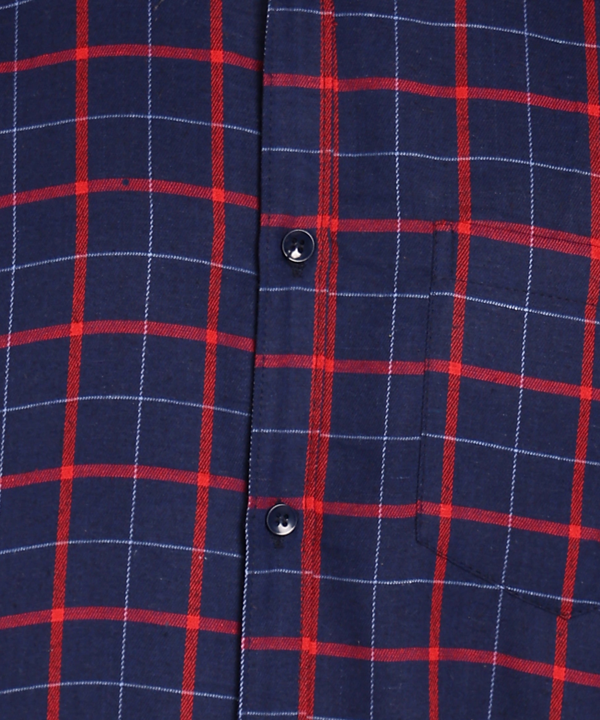 This navy cotton shirt with distinctive red grid checks combines timeless style with practical comfort. Crafted from soft, breathable fabric, it ensures all-day ease whether at the office or during casual outings. Its versatile design makes it an ideal choice for adding a polished yet relaxed touch to your wardrobe.