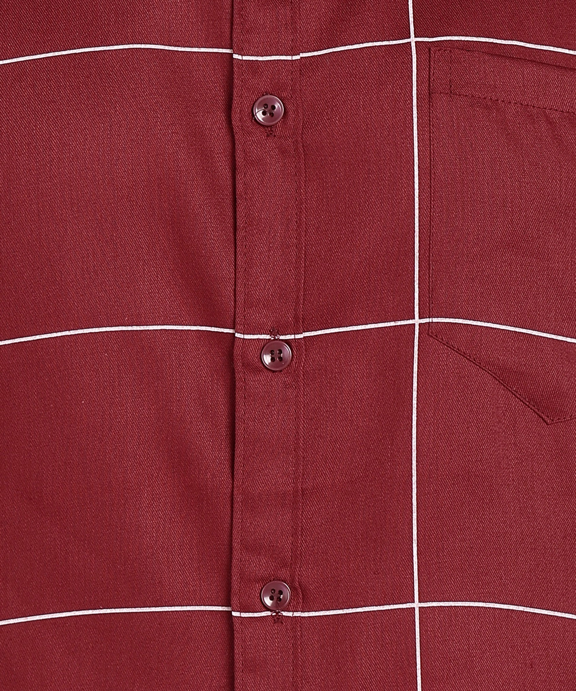 Sanganeri Maroon & White Bold Checked Cotton Shirt