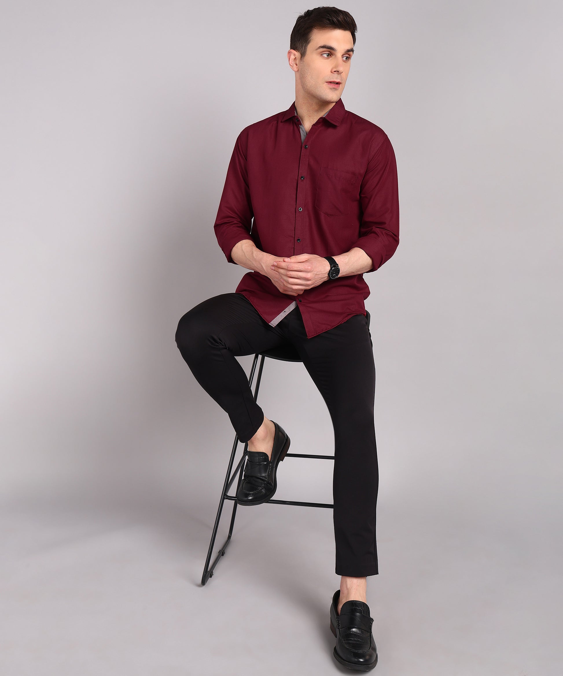 This Sanganeri Solid Maroon Cotton Shirt combines classic style with comfort. Crafted from soft, breathable cotton, it offers all-day ease whether at the office, during festive events, or for smart casual looks. Its rich maroon hue and solid finish ensure a timeless appearance that pairs well with a variety of outfits, making it a versatile addition to any wardrobe.