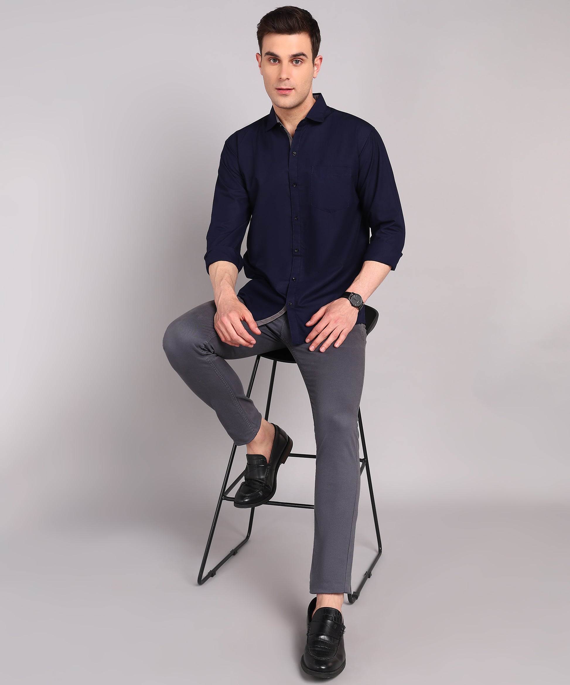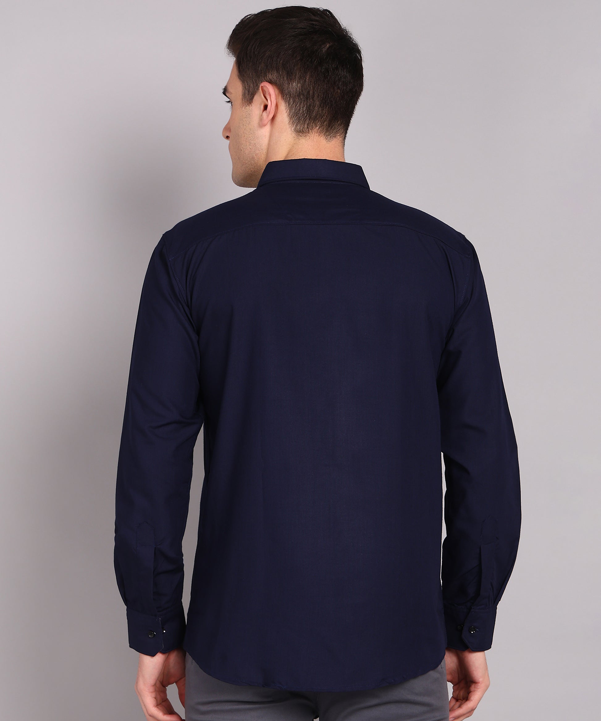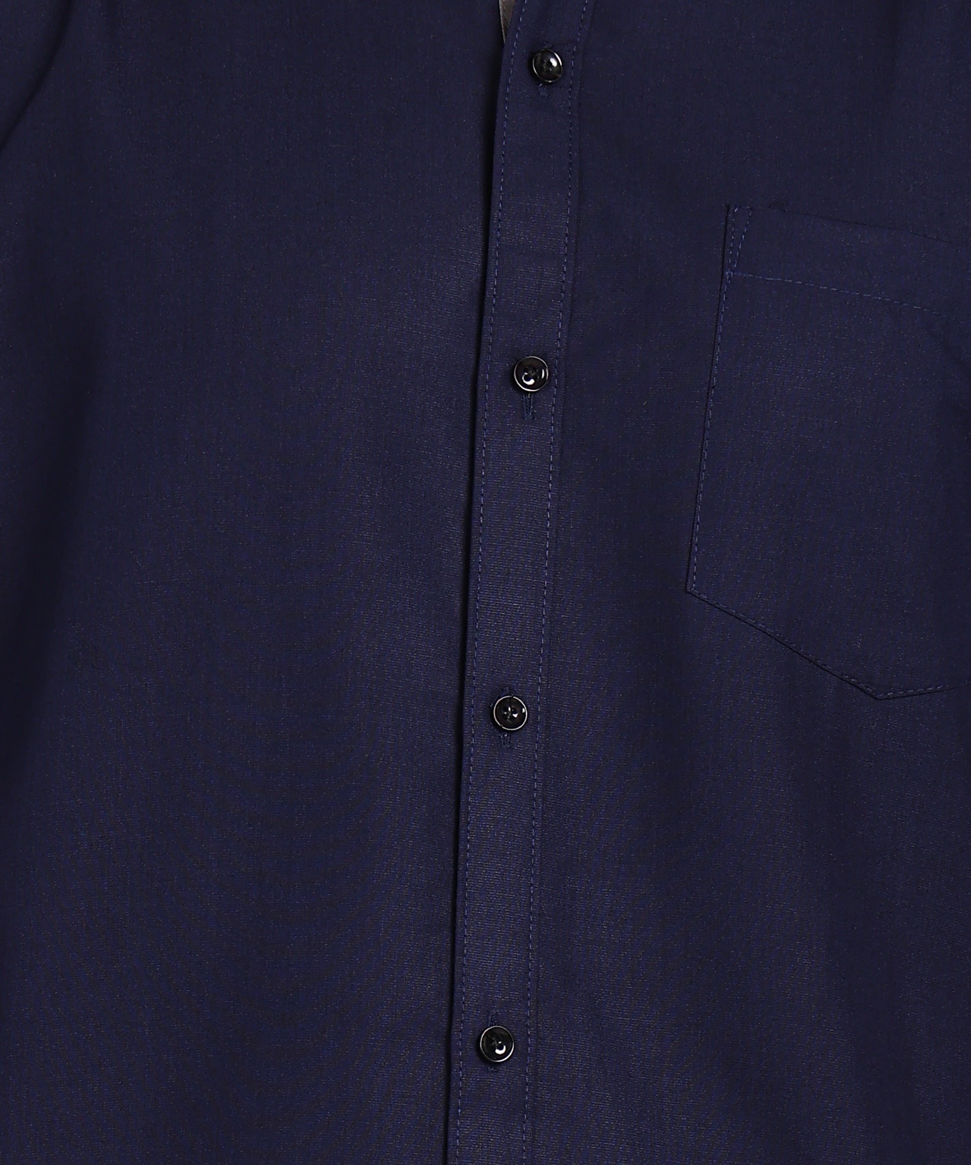 This Sanganeri Solid Navy Cotton Shirt offers timeless elegance with its clean design and deep navy hue. Crafted from soft, breathable cotton, it ensures comfort throughout your day. Its versatile style makes it ideal for professional settings, casual occasions, or layering during festive events, combining classic appeal with practical wearability.