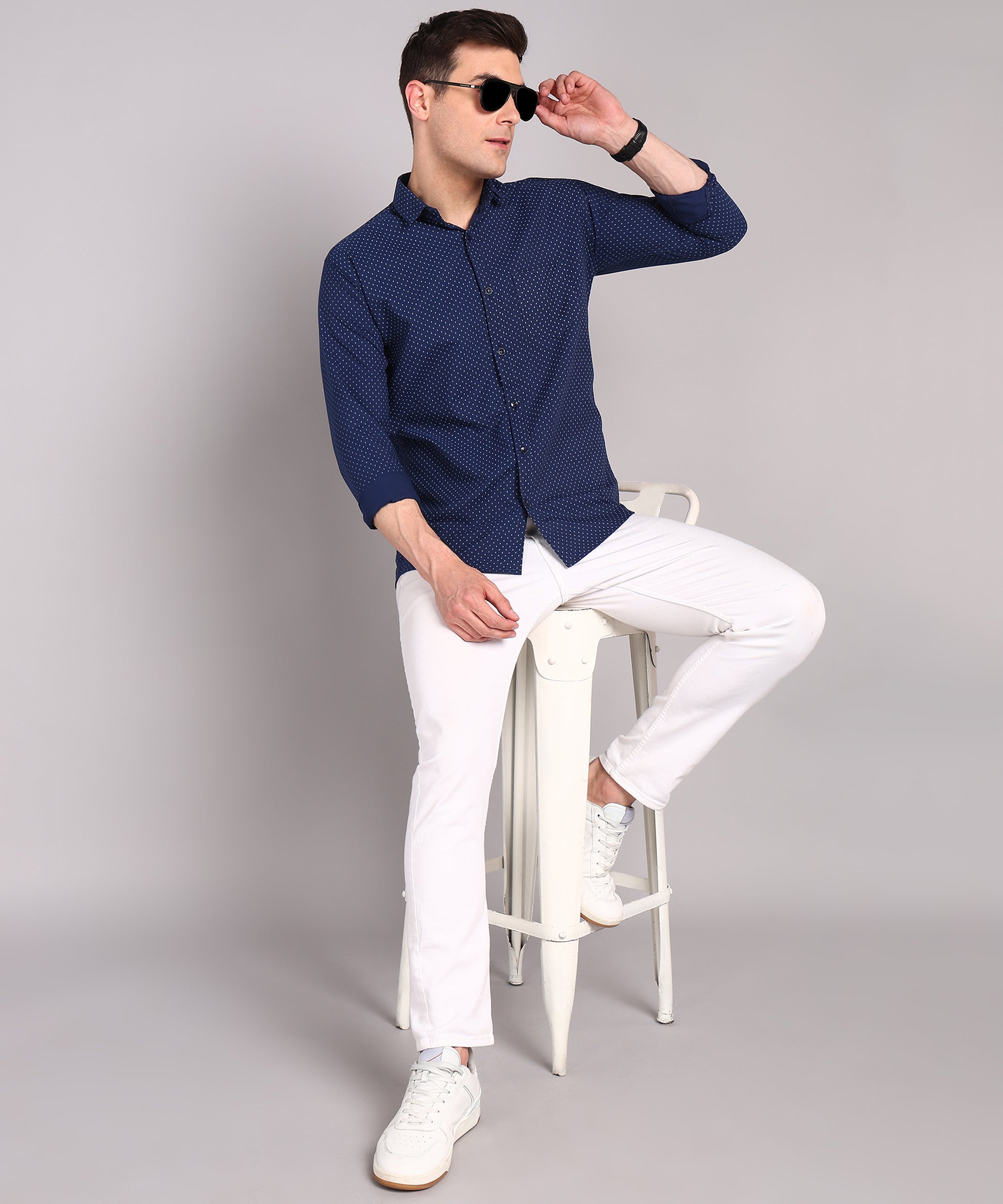 This Sanganeri Navy Cotton Shirt features intricate dotted block prints on a deep navy backdrop, showcasing traditional craftsmanship with contemporary style. Made from soft, breathable cotton, it ensures comfort throughout the day while its versatile design suits both formal office settings and festive occasions. Ideal for those seeking elegance without compromising on ease, this shirt adapts seamlessly from professional environments to casual evenings.