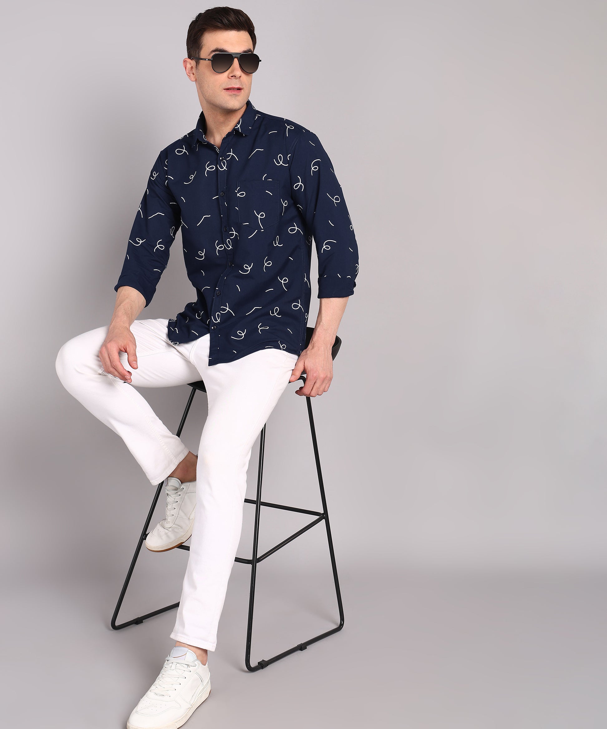 This navy cotton shirt features contemporary Sanganeri-inspired prints, merging traditional artistry with modern style. Crafted from lightweight, breathable fabric, it ensures all-day comfort while maintaining a sharp appearance. Versatile enough for smart casual events, festive occasions, or everyday wear, this shirt combines heritage design with practical sophistication.